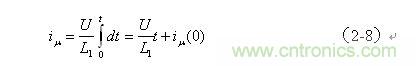 (2-8)式中, 為流過變壓器初級線圈的勵磁電流,U為加到變壓器初級線圈兩端的電壓,L1為變壓器初級線圈的電感量,t為時間,