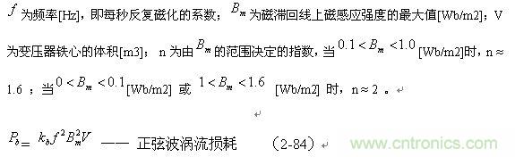 (2-83)式中, 為輸入電壓為正弦波時變壓器鐵芯的磁滯損耗[W]; 為與鐵磁物質有關的系數(由試驗決定);