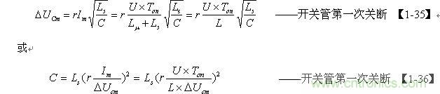 【1-42】和【1-43】式中, k=Ls/L為漏感 Ls與開關(guān)變壓器初級(jí)線圈的電感L的比值。