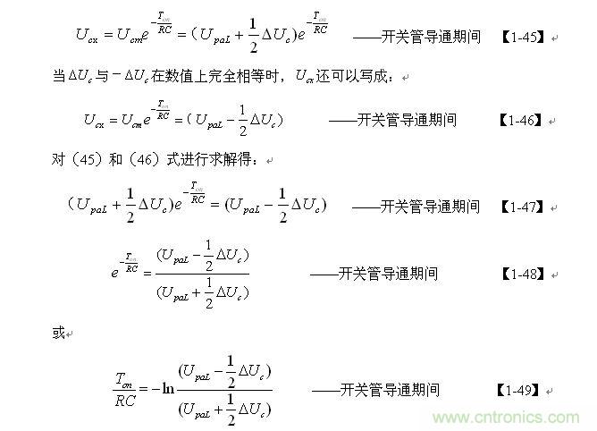 從【1-30】式中可以看出,(Uc2-Uc1) 正好是電容器兩端電壓的紋波電壓 ,即:紋波電壓