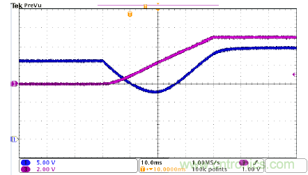 圖5、圖6和圖7是比較性實驗。CH1是VDD電壓,CH3是輸出電壓。