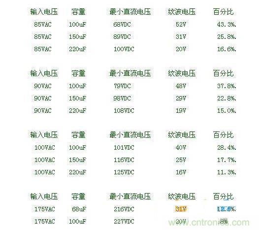 成立的前提條件是------必須定義合理的紋波電壓百分比。(紋波電壓百分比=Vdcmax-Vdcmin/Vdcmax;Vdcmax=Vacmin*1.414)