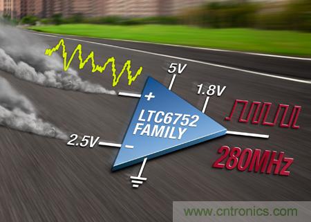 【導(dǎo)讀】近日,凌力爾特公司推出 LTC6752 系列比較器,該系列器件由于具備1.2ns 快速上升和下降時間以及 280MHz 的切換頻率,因此成為目前可用的最快 CMOS 輸出比較器。LTC6752 系列包括 5 種可選器件,這些器件采用不同封裝,提供獨特的功能組合。