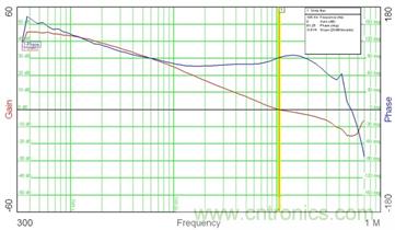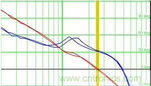 我們有可能會看到的相位裕量不能達到要求。如下圖七,只有30度左右。這個時候,只有調試不同的參數,才能得到比較好的結果。從而滿足系統穩定性的要求。