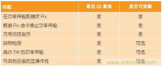 表1:Qi兼容標準與可穿戴解決方案對比