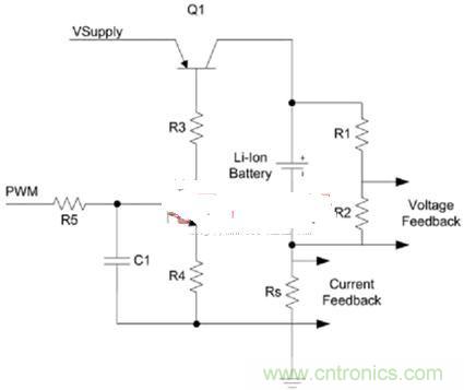 電流控制電路可采用電壓源和電流反饋技術進行構建。其工作原理類似于典型的負反饋控制系統(tǒng)。允許充電電流通過小電阻以獲得反饋,從而產生一定的電壓。