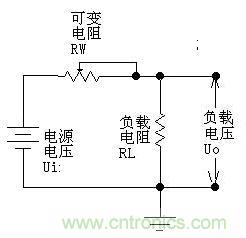 Uo=Ui×RL/(RW+RL),因此通過調節RW的大小,即可改變輸出電壓的大小。請注意,在這個式子里,如果我們只看可調電阻RW的值變化,Uo的輸出并不是線性的,但如果把RW和RL一起看,則是線性的。還要注意,我們這個圖并沒有將RW的引出端畫成連到左邊,而畫在右邊。雖然這從公式上看并沒有什么區別,但畫在右邊,卻正好反映了“采樣”和“反饋”的概念----實際中的電源,絕大部分都是工作在采樣和反饋的模式下的,使用前饋方法很少,或就是用了,也只是輔助方法而已。