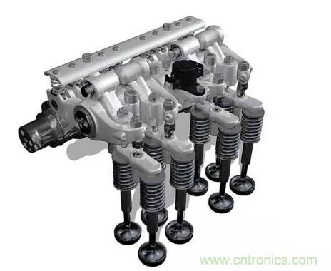 阻尼效果的產(chǎn)生需要在凸輪從動件下方安裝一個橋接器,含有一個控制電磁閥來調(diào)節(jié)液壓油向液壓執(zhí)行機構(gòu)的流動,而作用位置是凸輪而不是常規(guī)的凸輪從動件;液壓 油供應(yīng)來自于搖桿軸上的孔隙。動力輸出條件下電磁閥關(guān)閉,執(zhí)行機構(gòu)活塞鎖定在橋接器上,使得排氣閥門跟隨凸輪完成正常四沖程運動。當(dāng)需要制動的時候,電磁 閥開啟并與橋接器上執(zhí)行機構(gòu)脫離,排氣閥門依然處于關(guān)閉狀態(tài),直到氣缸活塞到達上止點位置。因為凸輪正常運轉(zhuǎn),而橋接器無法改變排氣閥舉升高度和時間長 短,所以制動效應(yīng)不會給發(fā)動機做功過程完整性造成麻煩。