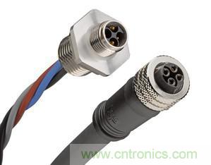 四針的 M12 連接器可以容納高達 14 AWG/2.5 mm2規格的尺寸,額定操作范圍為 300 V交流/直流,絕緣強度電壓達 1,600V。連接器的工作溫度范圍為攝氏 -20度至 +90度,并擁有IP67 等級的密封介面,使其理想用于惡劣以及潮濕的工業環境。連接器具有防塵功能,并且可以在短時間內浸沒于不超過 1 公尺(3 英尺 3.37 英寸) 水深中。除了面板安裝的公端/母端插座電線組外,F 編碼系列中還包含單端和雙端電線組,采用直管或 90度公端或母端連接器。