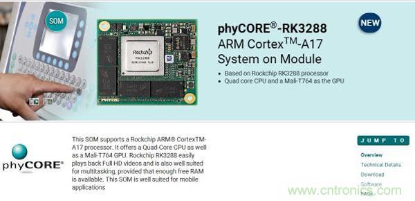 國際知名的處理器及電子技術型公司Phytec,推出了phyCORE-RK3288 ARM CortexTM-A17 System on Module,采用RK3288 SOM做工控板。根據Phytec網站資料描述,瑞芯微RK3288 CPU以及GPU性能強大,可輕松應對全高清視頻與多任務,非常適用于移動應用。