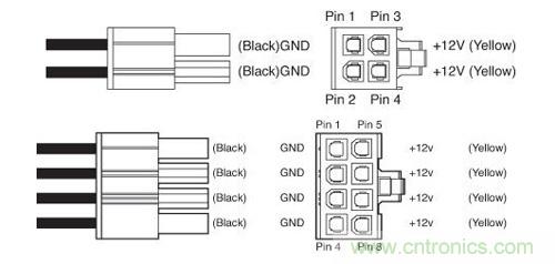 顯卡外接供電,有6pin和8pin兩種,提供+12V供電