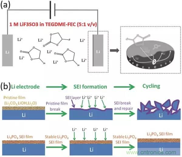 本征SEI層的調制被認為是“保護方法”,而沉積行為的操作是“基本方法”。迄今為止,兩個主要的方法具有上述功能,即加入特殊的金屬離子或固體官能粒子和提高電解液的濃度。