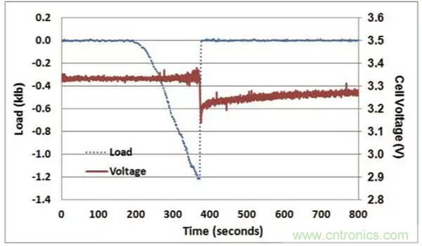 為了方便讀者理解本文,下圖是給出了LFP電池一個(gè)非常典型的成功通過(guò)機(jī)械擠壓測(cè)試(正反饋)的判據(jù),電池?cái)D壓變形達(dá)到一定的程度后,引起了電池內(nèi)短路的發(fā)生,電池電壓迅速下降,檢測(cè)到電壓下降后(0.1V),擠壓力隨之被移除,電池的電壓快速回升,電池沒(méi)有發(fā)生熱失控,則電池通過(guò)擠壓實(shí)驗(yàn)。