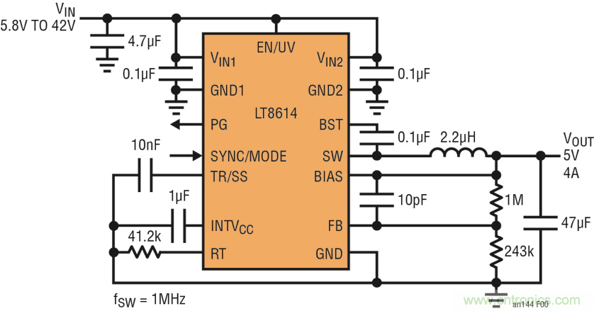 圖 6b:采用 Silent Switcher 拓撲的 LT8614