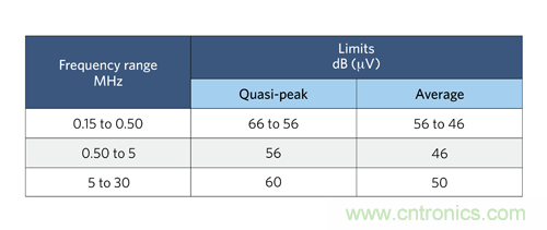 圖 1:CISPR 22 標準 B 類傳導 EMI 規范。