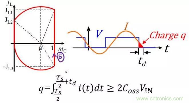 要回答這個(gè)定量問(wèn)題,其實(shí)是不那么簡(jiǎn)單的。對(duì)于PWM converter,參考quasi-square-wave ZVS buck converters,我們是可以畫(huà)出state plane,然后根據(jù)state plane圖的幾何關(guān)系定量分析出來(lái)的,但是非常繁瑣,常常是七八個(gè)三角函數(shù)等式求解。所以我個(gè)人愚見(jiàn),在設(shè)計(jì)上,就讓開(kāi)關(guān)頻率小點(diǎn),電感值小點(diǎn),讓電感電流ripple足夠大,能達(dá)到負(fù)值就差不多了。對(duì)于resonant converter,倒是可以簡(jiǎn)單地通過(guò)積分方法,算出i與t的積分,讓這個(gè)it積分大于Coss上的charge就行。比如已知impedance,算出V與I的phase shift,然后換算成時(shí)間td,然后在td上對(duì)電感電流進(jìn)行積分,只要這個(gè)積分大于等于Coss*Vin就行了。