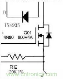 這個方法卻是錯誤的。為什么?因為這個反壓尖峰并不是二極管引起的,盡管表現是在這里。這時只要加強MOS管的吸收或者采取其他適當的措施,這個尖峰就會消失或者削弱。