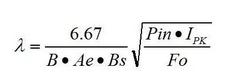 ●可由此大致判斷(λ=1)磁芯是否合適。高效率的設計要求磁應力不能太緊張,也就是變壓器(包括繞組和磁芯)的發(fā)熱不要成為整個電源最突出的。當熱應力突出時,應增加磁芯的 Ae.B 或者使用更好的材質(zhì)。