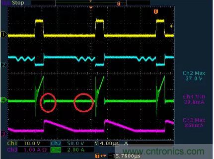 因此我們就可以很容易從波形上看出來反激電源是工作在CCM還是DCM狀態。