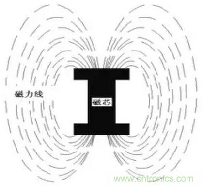正如上所指,對于一個開環磁路的電感(以工字電感為例),其磁力線的主磁路是空氣。如圖1。