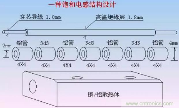 在其他條件相同情況下,相同體積的磁芯的飽和電感緩沖效果大致相當。既然如此,磁芯可以按照最有利于散熱的磁路進行設計。比如細長的管狀磁芯比環狀磁芯、多個小磁芯比集中一個大磁芯、穿心電感比多匝電感顯然具有更大的散熱表面積。