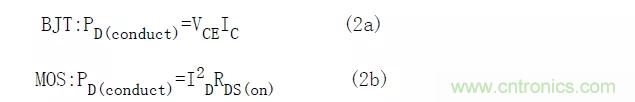 控制這個損耗的典型方法是使功率開關導通期間的電壓降最小。要達到這個目的,設計者必須使開關工作在飽和狀態。這些條件由式(2a)和式(2b)給出,通過基極或柵極過電流驅動,確保由外部元器件而不是功率開關本身對集電極或漏極電流進行控制。
