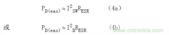 輸入輸出電容是功率開關或輸出整流器產生的高頻電流的唯一來源(或儲存處),所以通過觀察這些電流波形可以合理地確定流過這些電容ESR的電流。這個電流不可避免地在電容內產生熱量。設計濾波電容的主要任務就是確保電容內部發熱足夠低,以保證產品的壽命。式(4)給出了電容的ESR所產生的功率損耗的計算式。