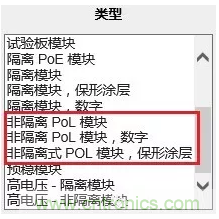 為方便工程師選料,Digi-Key官網(wǎng)上的「電源 - 板安裝」分類中的「直流轉(zhuǎn)換器」子分類中,在「類型」中已將PoL產(chǎn)品列出,方便工程師更快更準(zhǔn)確地選料。