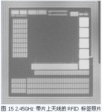 本文所介紹的一些RFID 標(biāo)簽的主要電路,大部分已經(jīng)經(jīng)過了流片的驗證。圖14 是我們所設(shè)計的一款RFID 標(biāo)簽芯片。芯片面積0.7mm×1.0mm,在36dBm EIRP 下,可在6 米處讀出標(biāo)簽卡號。圖15 是2.45GHz 帶有片上天線設(shè)計的RFID 標(biāo)簽。在42dBm EIRP 下,該芯片可在40cm處產(chǎn)生響應(yīng)。