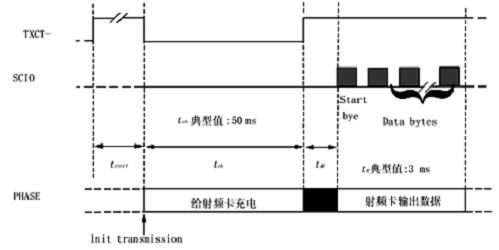 以下給出基站讀取數據的時序(如圖2),由射頻卡發出的數據采用FSK調制。