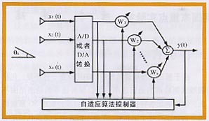 智能天線引入空分多址(SDMA)方式。在相同時隙、相同頻率或相同地址碼的情況下,用戶仍可以根據信號空間傳播路徑的不同而區分。實際應用中,天線陣多采用均勻線陣或均勻圓陣。智能天線系統由天線陣;波束成形成網絡;自適應算法控制三部分組成(見圖1)。