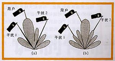 圖3自適應陣列智能天線(a)與束轉換智能天線(b)的比較