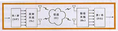 移動通信環境中存在多個散射體、反射體,在無線通信鏈路的發射與接收端存在多條傳播路徑,多徑傳播對通信的有效性與可靠性造成了嚴重的影響。研究表明,可以利用多徑引起的接收信號的某些空間特性實現接收端的信號分離。多輸入一多輸出(MIMO)技術在通信鏈路兩端均使用多個天線,發端將信源輸出的串行碼流轉成多路并行子碼流,分別通過不同的發射天線陣元同頻、同時發送,接收方則利用多徑引起的多個接收天線上信號的不相關性從混合信號中分離估計出原始子碼流(見圖4)這相當于頻帶資源重復利用,可以在原有的頻帶內實現高速率的信息傳輸,使頻譜利用率和鏈路可靠性極大的提高。MIMO系統提供分集增益(diversitygain)和復用增益(multiplexinggain)。
