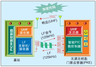 在這些應用中,基站用125 kHz頻率發(fā)送命令,同時等待附近的有效應答器以UHF頻率發(fā)回響應。智能應答器一般處于接收模式并等待任何有效的125kHz基站命令。如果接收到任何有效的基站命令,應答器以UHF頻率發(fā)送響應。這就是我們所說的“無源無鑰匙門控系統(tǒng)”。由于PKE系統(tǒng)采用125kHz電路進行雙向通信,因此低成本、小體積及低功耗PKE應答器可使用含有數(shù)字與低頻前端的集成系統(tǒng)級芯片(SoC) 智能微控制器單元(MCU)來生產(chǎn)。