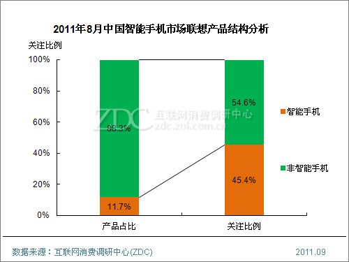(圖)2011年8月中國智能手機市場聯想產品結構分析