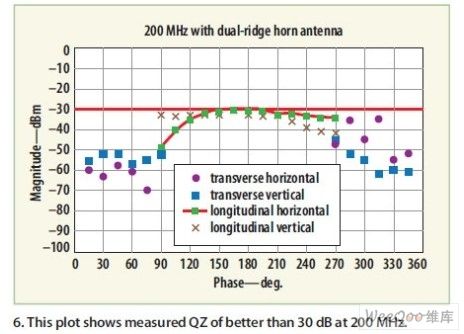 圖8:圖中測(cè)試采用一個(gè)對(duì)數(shù)周期天線來(lái)掃描QZ以測(cè)量反射率。