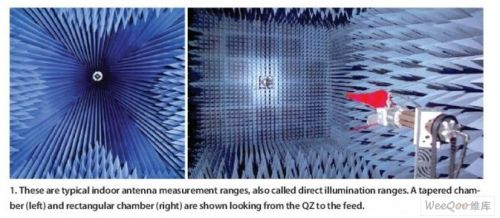 圖1:這些是典型的室內(nèi)直射式測(cè)量系統(tǒng),圖中分別為錐形(左)和矩形(右)測(cè)試場(chǎng)。