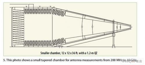 圖5:一個(gè)用于天線測(cè)試的200MHz至40GHz小型錐形暗室。