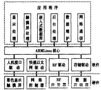 檢測儀主站的軟件是基于ARMLinux開發的。自20世紀80年代末以來,陸續出現了一些嵌入式操作系統,但其高昂的價格令人望而卻步,且源代碼的封閉性也大大限制了開發者的積極性。因此,結合國內外具體情況,選擇了ARMLinux操作系統作為開發平臺。檢測儀主站的軟件結構如圖5所示。