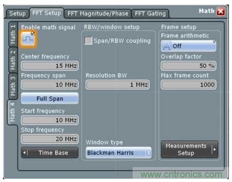 首先要把頻譜分析的速度提高上去,實(shí)時(shí)刷新,所以你看不再忍受示波器fft 變換時(shí)候類似死機(jī)一般,其次我們把RBW 做到了高達(dá)1Hz,這個(gè)水平幾乎只有頻譜儀才能做到啊,我們的界面設(shè)計(jì)和頻譜儀的操作一摸一樣,中心頻率,頻譜范圍,起始頻譜,截止頻率,RBW 設(shè)置,窗函數(shù)設(shè)置,把頻譜儀的設(shè)置幾乎全部移植過來了。下面從四個(gè)方面論證我們?cè)趺窗裦ft 功能做到極致的: