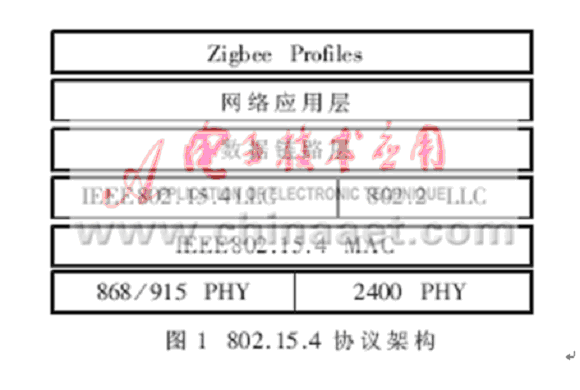 IEEE802.15.4滿足國際標準組織(ISO)開放系統互連(OSI)參考模式。它定義了單一的MAC層和多樣的物理層(如圖1所示),表1中概括了802.15.4的一些特點。Zigbee聯盟制定了MAC層以上協議,其協議套件由高層應用規范、應用會聚層、網絡層、數據鏈路層和物理層組成。