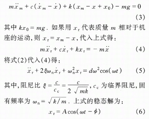 式中,ω為振動(dòng)的角頻率,d為振動(dòng)的幅值.由牛頓定律,該振動(dòng)系統(tǒng)的微分方程可寫為: