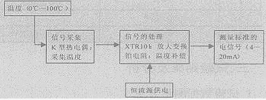 整套系統要求在0~100℃范圍對應輸出4mA~20mA的電流型溫度變送器。