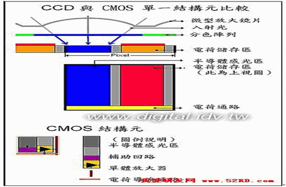 - 通過圖片形象比較CCD和CMOS在構造和性能的不同