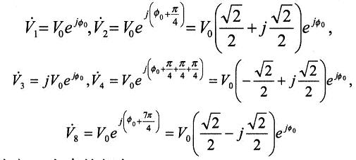 如果用Vo表示各發(fā)射極電壓的幅值,并取8路信號中的第1路信號的相位為參考值,則有:
