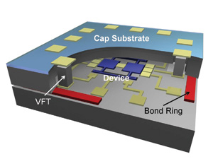 MEMS器件有時也采用晶圓級封裝,并用保護帽把MEMS密封起來,實現與外部環境的隔離或在下次封裝前對MEMS器件提供移動保護。這項技術常常用于慣性芯片的封裝,如陀螺儀和加速度計。