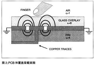電容式感應(yīng)開關(guān)是一個(gè)非常有吸引力的開關(guān),但它需要適當(dāng)?shù)奈锢沓叽纾约霸诘湫偷碾娙菔絺鞲衅髟O(shè)計(jì)中使用一個(gè)3毫米或更薄的薄膜疊層。隨著薄膜疊層厚度的增加。通過薄膜疊層來感應(yīng)手指會(huì)而變得越來越困難。換言之,薄膜疊層厚度的增加,調(diào)諧系統(tǒng)的處理過程就從”科學(xué)技術(shù)”轉(zhuǎn)到了”設(shè)計(jì)技巧”上了。為了演示如何使一個(gè)電容式傳感器突破當(dāng)今技術(shù)的限制,在此示例系統(tǒng)中使用的玻璃覆蓋的厚度定為10毫米。玻璃具有易于使用、容易獲得和透明的特點(diǎn),你可以看到在玻璃下面的傳感器的電路焊盤。玻璃覆蓋層也在所謂的“白色家電”(家用電器)中直接應(yīng)用。