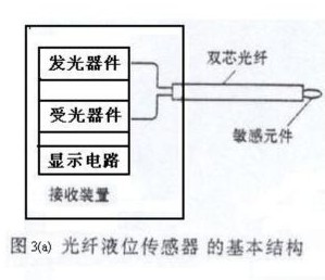 圖3(a)所示為光纖液位傳感器的基本結構。這種傳感器的敏感元件和傳輸信號的光纖均由玻璃纖維構成,故有絕緣性能好和抗電磁噪聲等優點。
