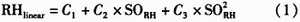 式中,RHlinear為經過線性補償后的濕度值,SORH為相對濕度測量值,C1,C2和C3為線性補償系數,取值如表3所示。