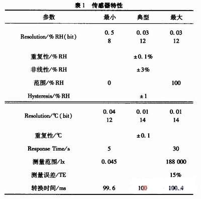 該傳感器集環境溫、濕度和光照度傳感器于一體,使測量系統的成本和體積大為降低,減少了系統設計的復雜性。